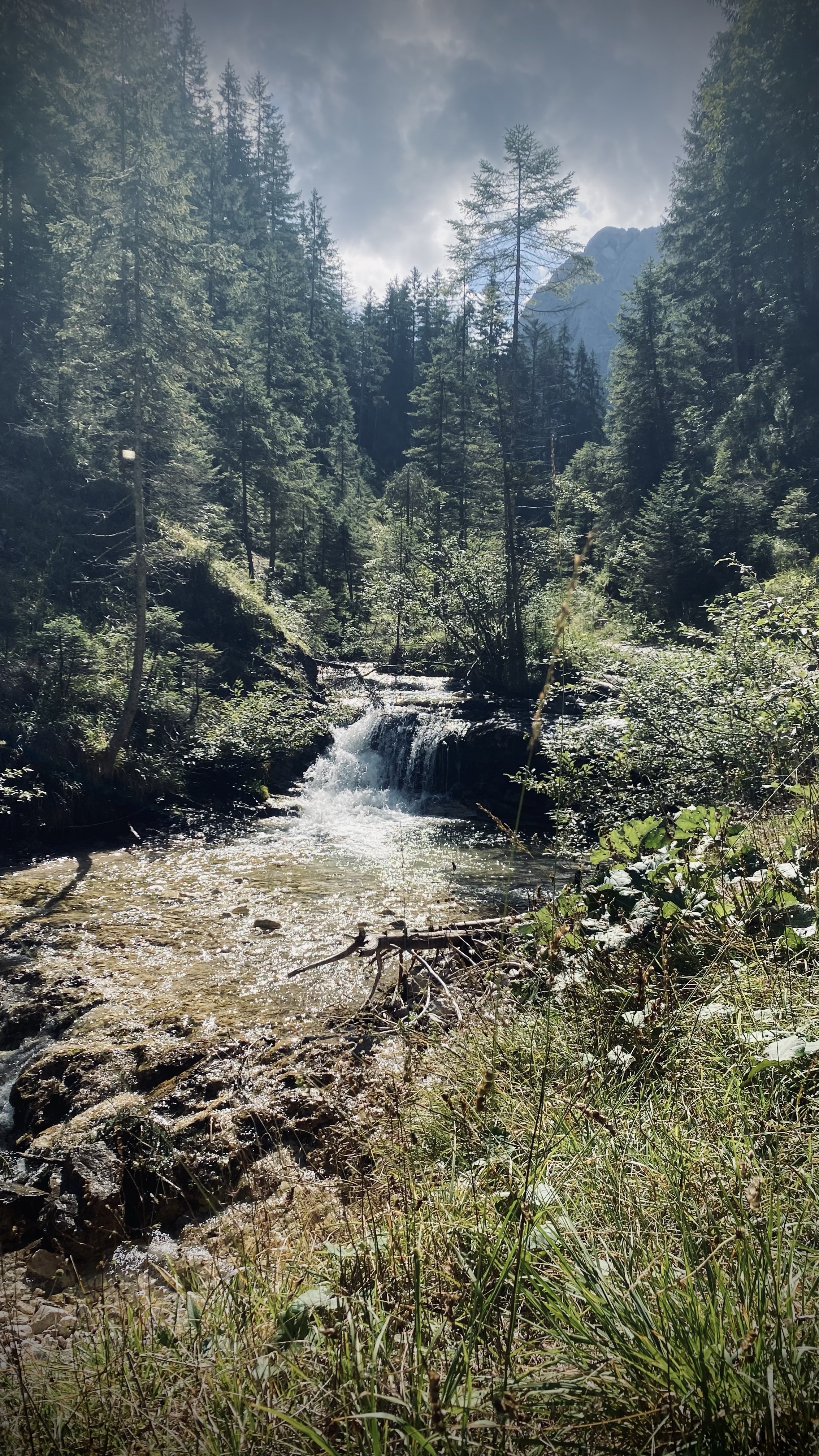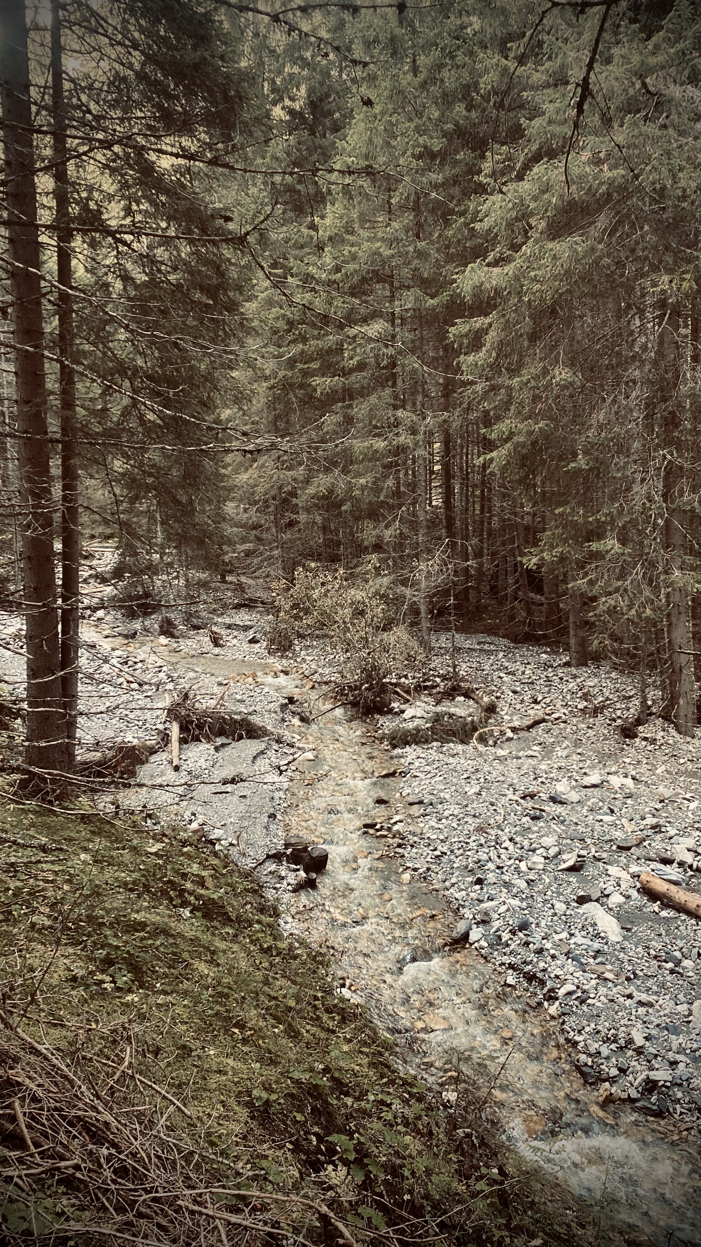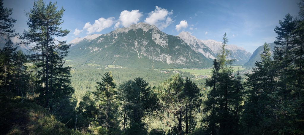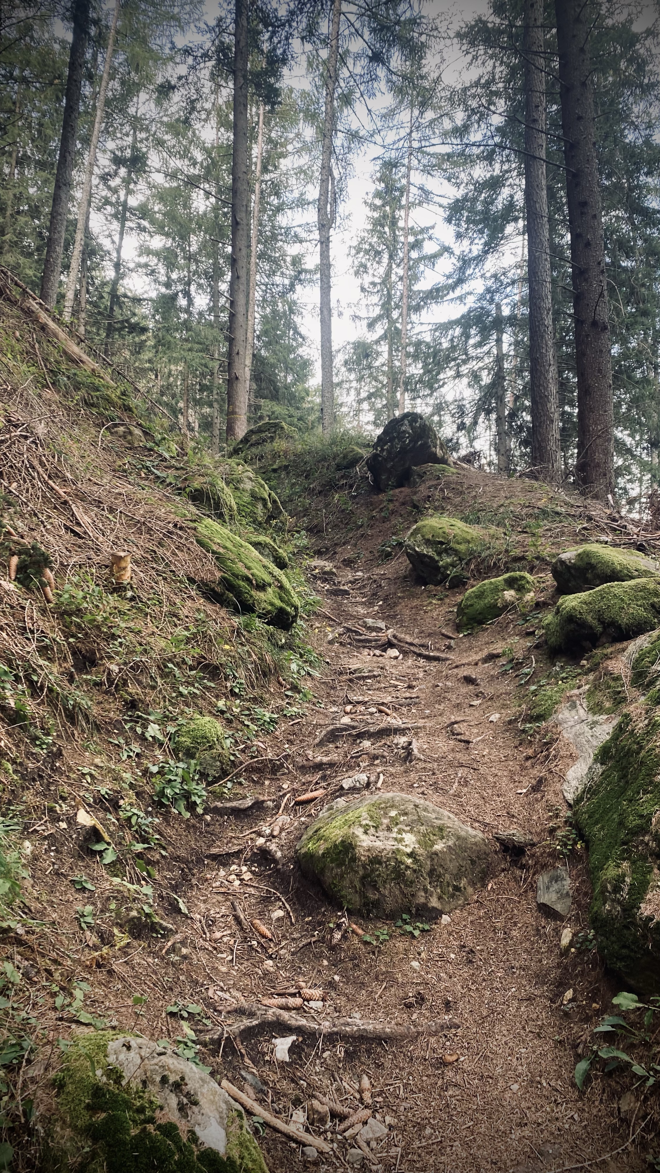 Von der Ederkanzel aus ging es auf einem Waldpfad abwärts in Richtung Leutasch-Schanz. Der steinige und verwurzelte Weg führte uns hinunter bis zur Leutacher Ach und zur Geisterklamm.