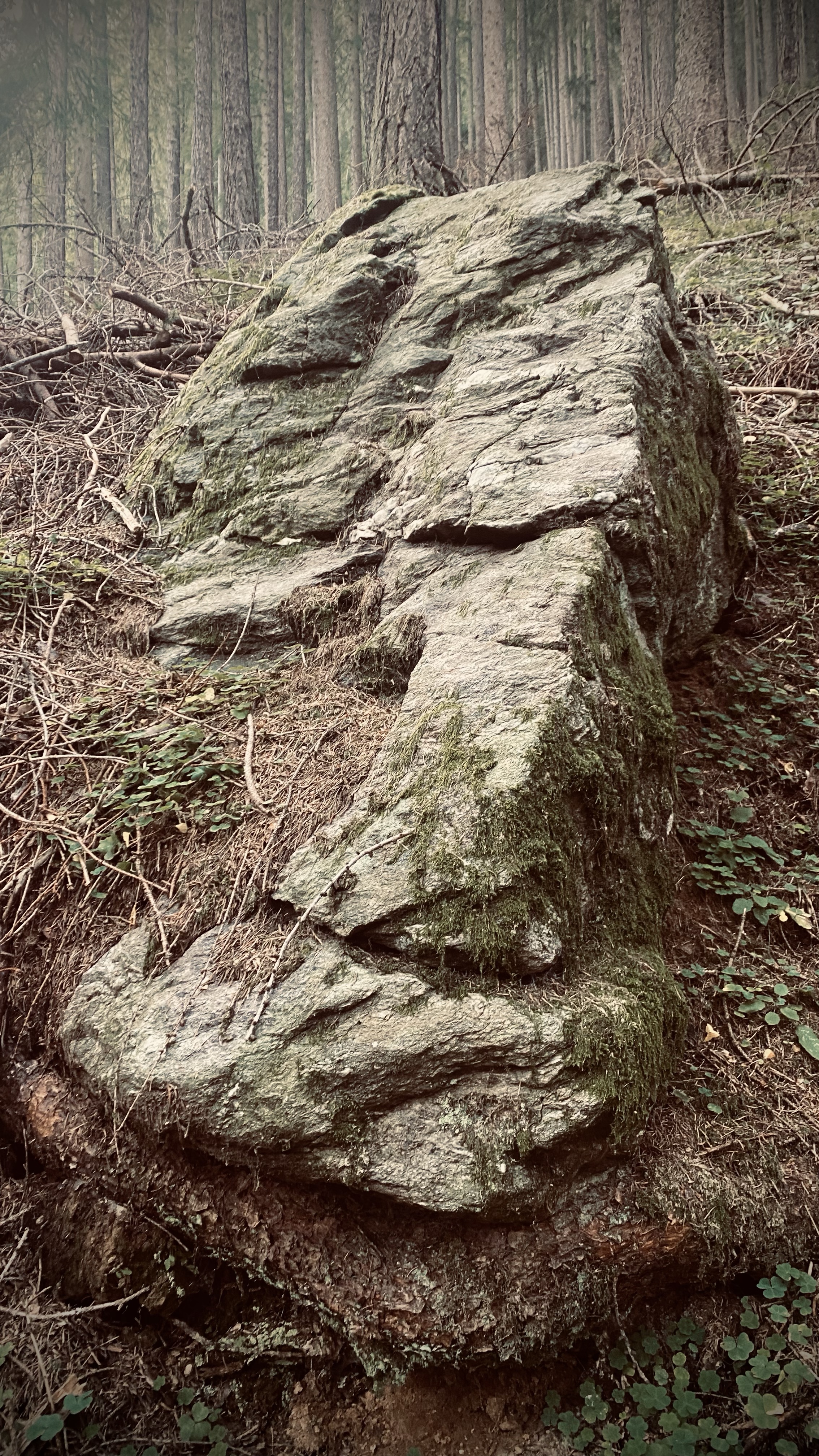 Noch unterhalb der Bergstation kommt man auf den Quellenweg. Ein Pilgerweg, dem man bis zum Wallfahrtskloster Maria Waldrast folgt. Der Weg ist gesäumt von kleinen Kapellen und Bildstöcken, die verschiedene religiöse Szenen nachstellen. Man passiert aber auch den Marienstein. Einer Legende nach soll Maria sich auf ihrem Weg nach Maria Waldrast an dieser Stelle ausgeruht haben. Der Stein zeigt ihren Fußabdruck und jeder ist eingeladen, ebenfalls einen Moment zu ruhen und seinen eigenen Fuß in diesen Fußabdruck zu stellen …Angeblich soll der Abdruck zu jedem Fuß passen. Also bei mir stimmt’s!