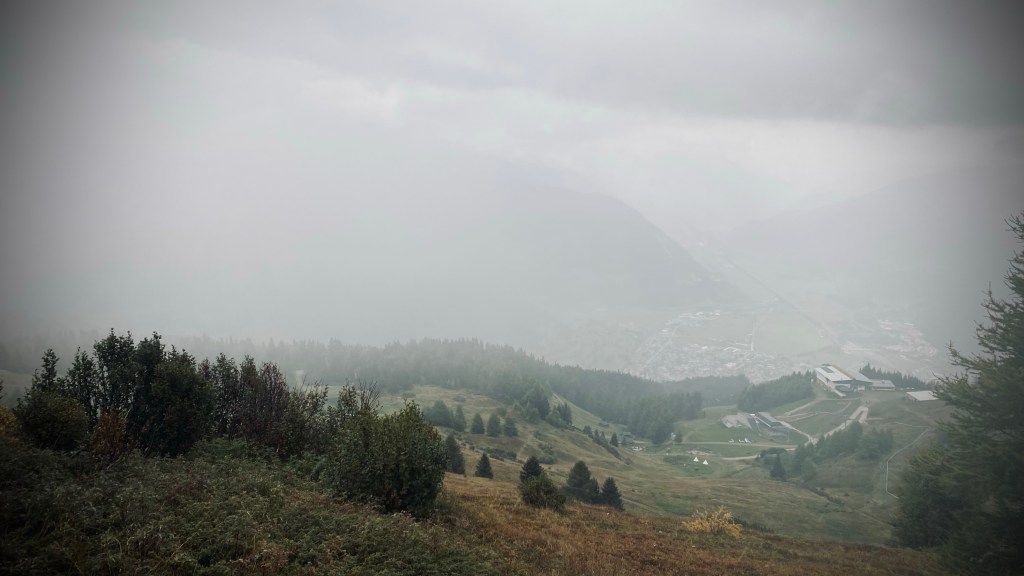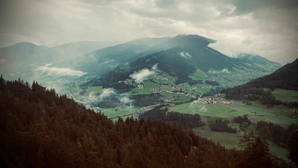 Zuerst einmal ging es mit dem Bus in einigen Minuten zur Talstation Serlesbahn Mieders. Hier konnte man nun entweder mit dem Lift gemütlich zur Bergstation fahren oder über Forst-und Waldwege selber hinauflaufen. Rückblickend war die gesamte Tour zwar lang, ich kann trotzdem nur empfehlen, hinaufzulaufen. Die Sonne hat sich den ganzen Tag hinter tief hängenden Wolken und Nebelschwaden versteckt – trotzdem waren die Temperaturen so, dass man gut mit T-Shirt und langer Hose laufen konnte.