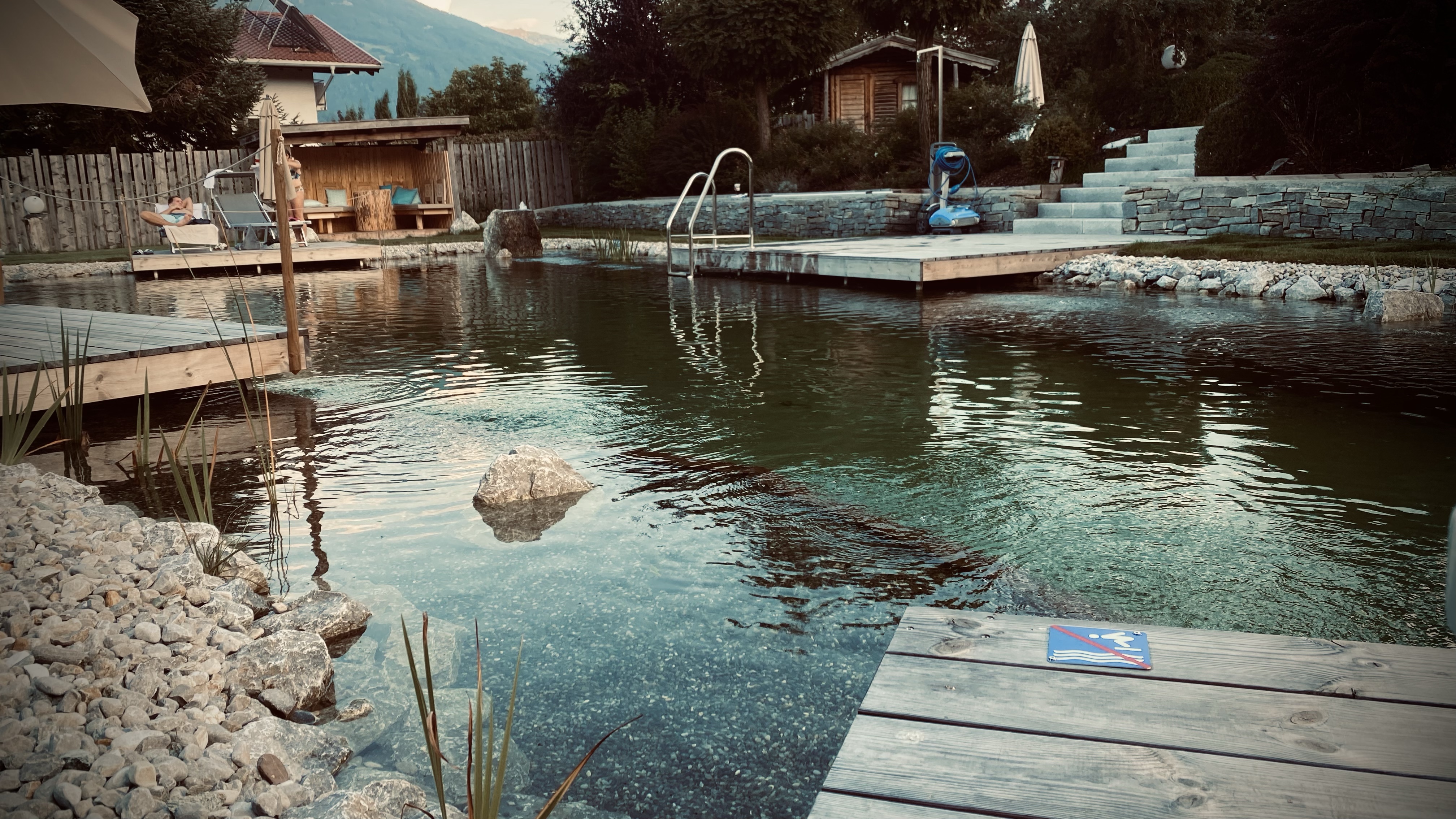 Da ich diese von ASI Reisen geplante Alpenüberquerung mit Ginger, also mit Hund mache, bin ich zweimal anders untergebracht als üblich. Das Hotel Seppl erlaubt Hunde – das für diese Nacht eigentlich geplante Hotel nicht. Wie es scheint, hatte ich damit richtig Glück. Die anderen Wanderer, die ebenfalls am Montag Richtung Sterzing aufgebrochen sind, haben nicht wirklich viel Gutes von ihrer letzten Übernachtung zu berichten. Ich dagegen war mehr als zufrieden. Abgesehen von Pool, Naturpool im Garten und tollem Abendessen war auch das Frühstück abwechslungsreich und lecker.