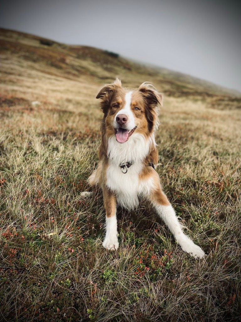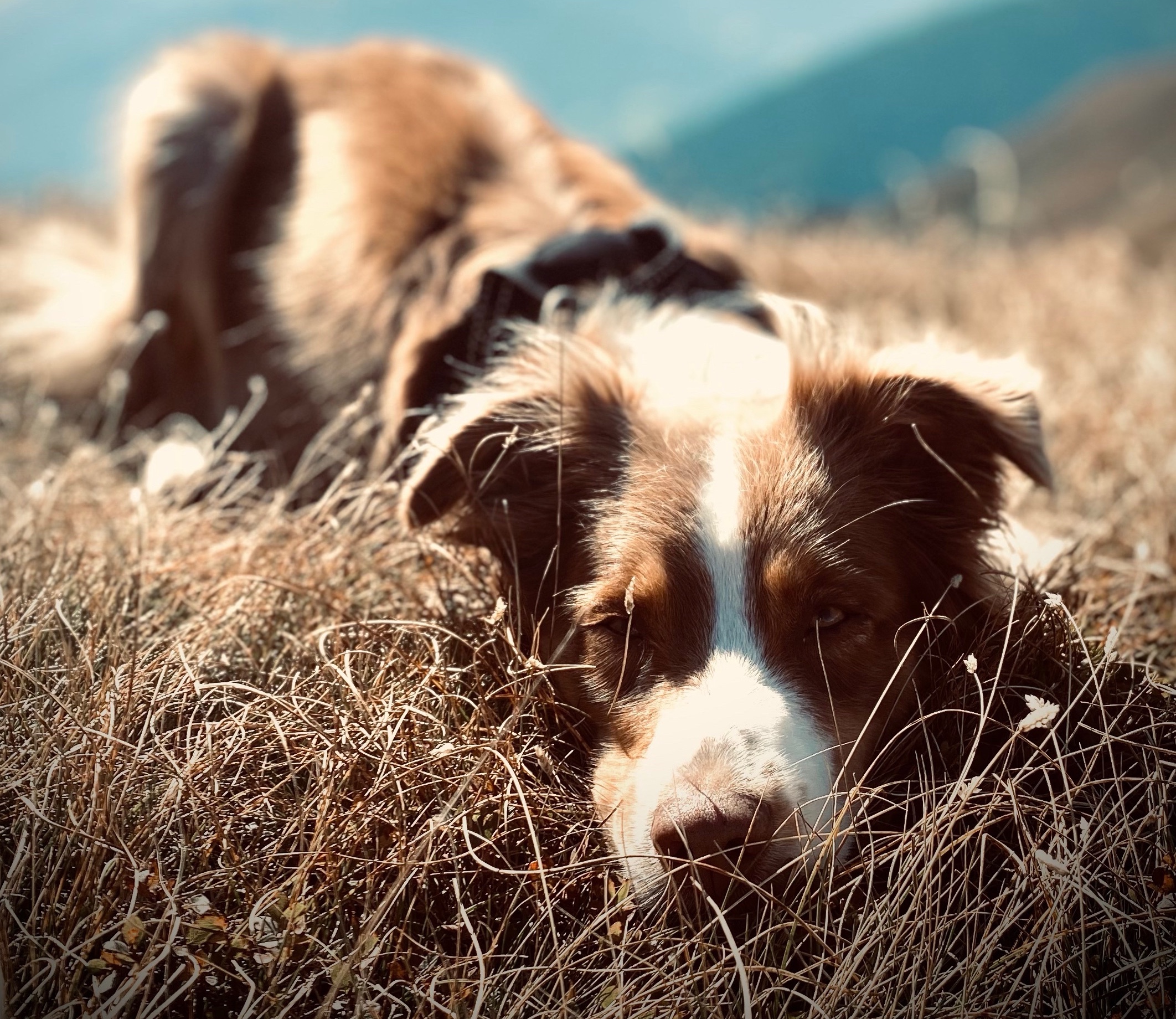 Unterhalb des Birgitköpflhaus hörten wir auf einmal aufgeregte Schreie. Ginger war sofort alarmiert und scannte den Hang. Ich konnte erst nicht genau ausmachen, woher die Geräusche kamen, doch dann entdeckte ich vereinzelt braune Tiere am Boden kauern. Zuerst meinte ich, es wären Greifvögel – erkannte dann aber, dass es Murmeltiere waren, die sich gegenseitig warnten, das Wanderer und Hund im Anmarsch sind. Ginger setzte in dem Moment auch schon an und hechtete den Abhang herunter – auf Pfiff drehte sie zum Glück sofort ab und kam zurück. Hunde mit ausgeprägterem Jagdtrieb sollten hier vielleicht besser an der Leine geführt werden.