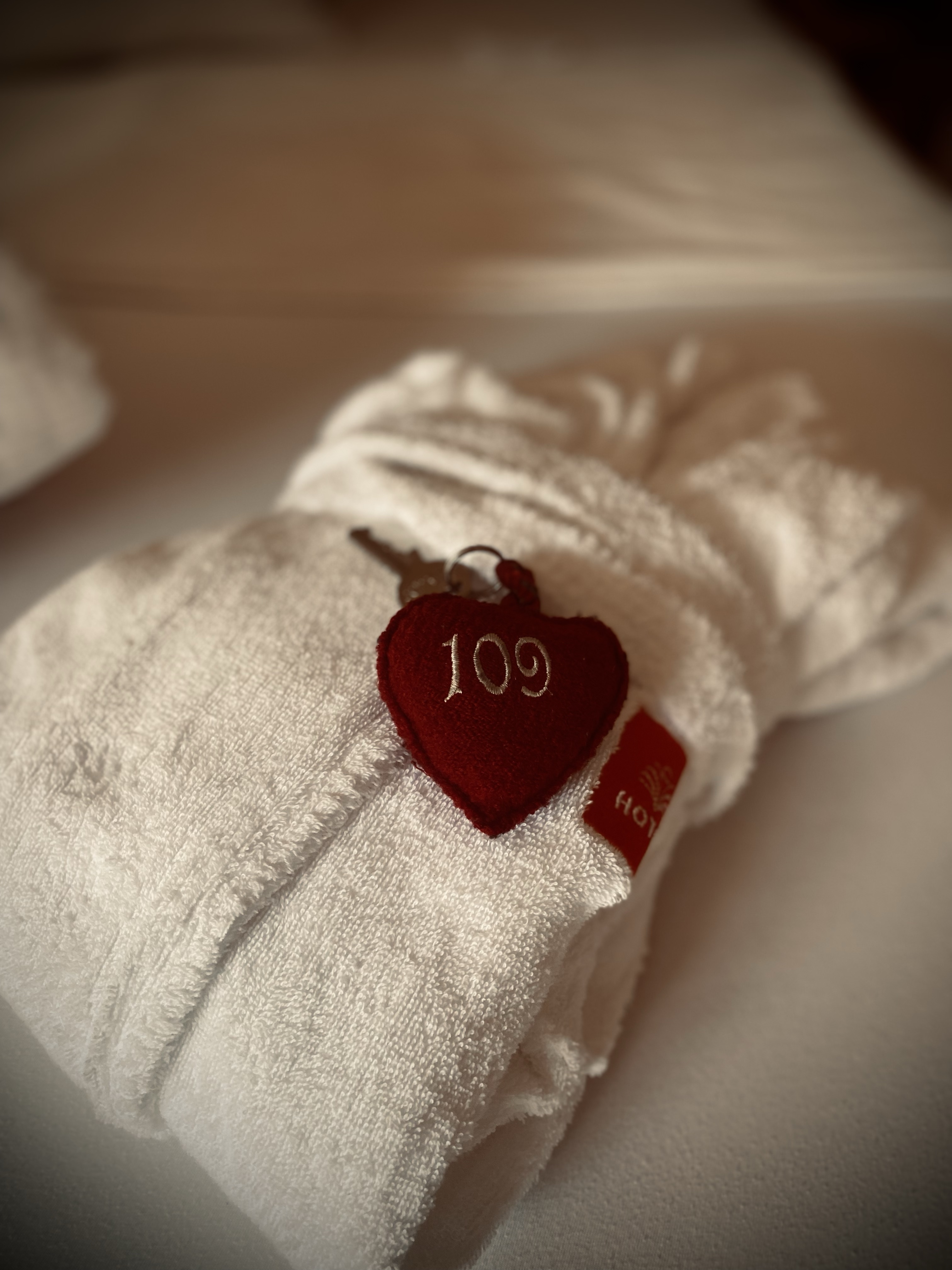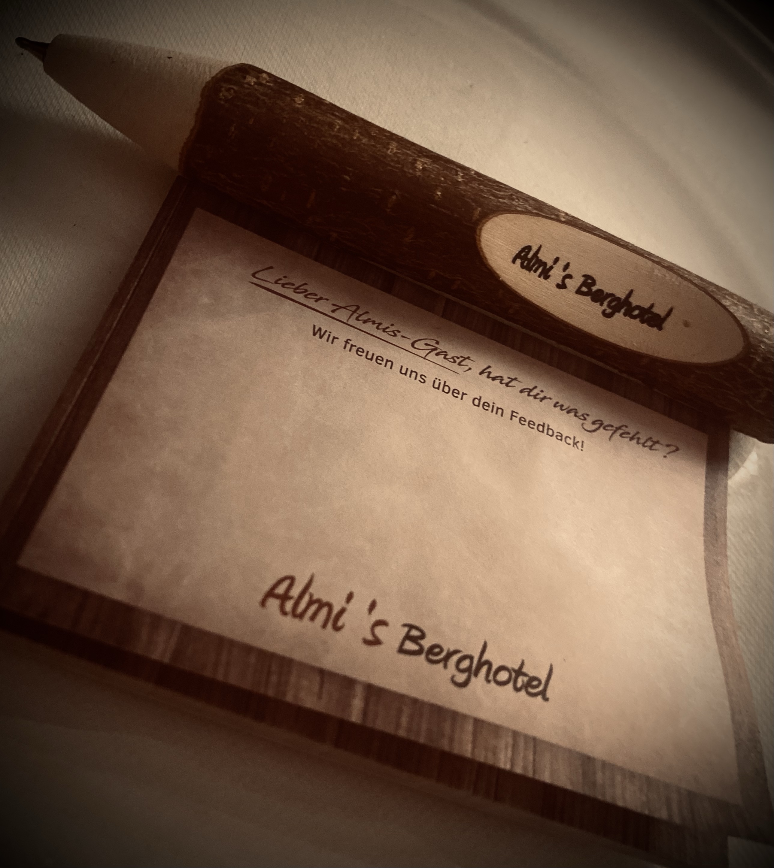 Das Willkommen in Almi `s Berghotel war freundlich und sehr unkompliziert. Das übliche Check-in und Corona Prozedere, dann ging es auch schon in unser Zimmer im ersten Stock. Hier war ich positiv überrascht. Ein heller Raum mit wunderschönem Blick auf die Berge und netten Details, die im Kopf bleiben.