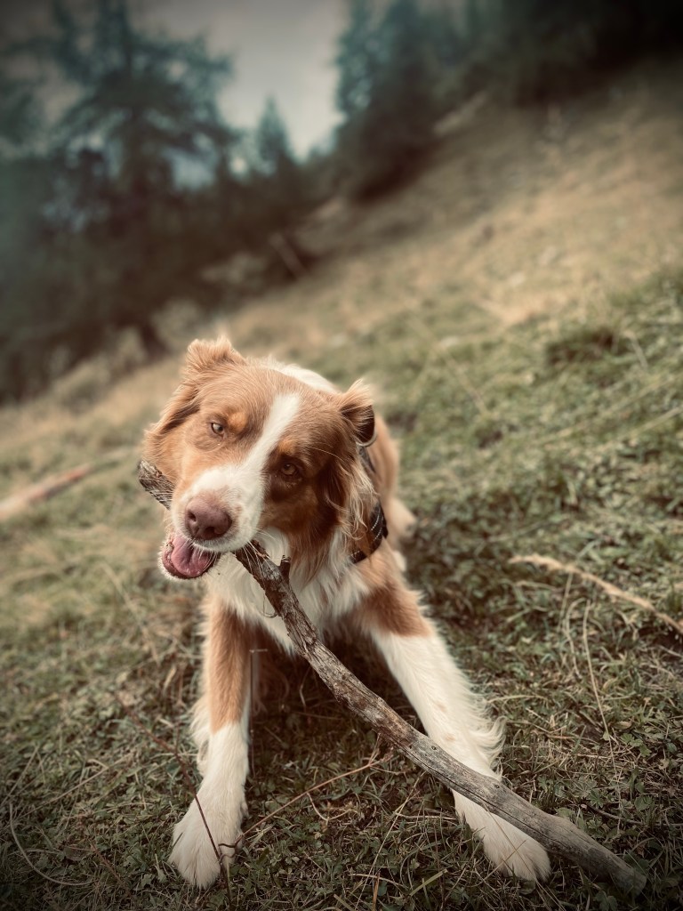 Ginger hat ihre Sache richtig gut gemacht, konnte fast immer frei laufen und hatte bis zum Schluss noch genug Energie, mir Stecken vor die Füße zu werfen und mich zum Werfen aufzufordern. Auf der gesamten Strecke gab es für sie immer wieder Möglichkeiten, sich abzukühlen und zu trinken und die extra Große Portion Futter am Abend plus Schweineohr haben ihr sichtlich geschmeckt.