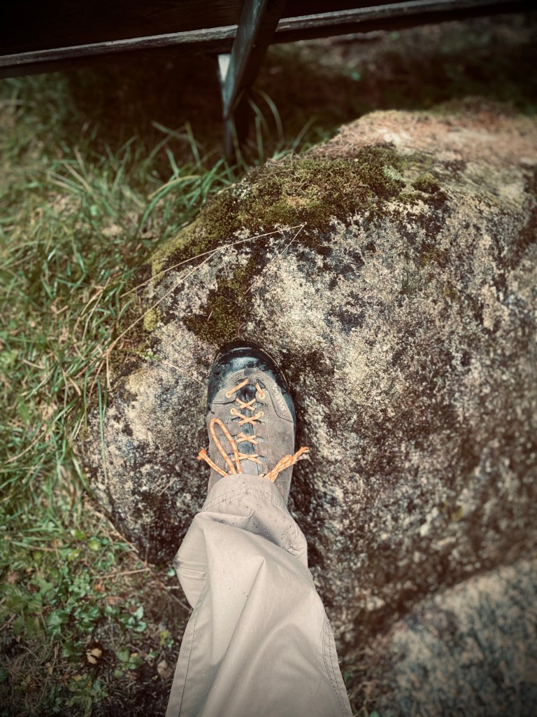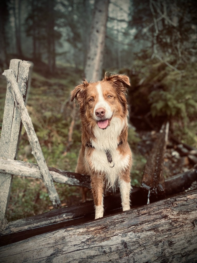 Nun ist also schon Tag 4 um – Halbzeit! Bisher noch keine Begegnungen mit Bären oder Wölfen – leider. Wären ja mal spektakuläre Fotos. Bisher auch keine, hinter Bäumen lauernden, gemeinen Waldschrate. Dafür hin und wieder nette Begegnungen mit Menschen, die entweder die Natur oder meinen Hund toll fanden (Beidem kann ich nur zustimmen!) Ich komme gut mit mir alleine klar und habe echte Freude an der Bewegung. Dabei fühle ich mich trotz der Anstrengung interessanterweise eher gestärkt. Hin und wieder plagt mich so ein klitzekleiner Funken Heimweh … den ich aber schnell in Vorfreude auf daheim umwandeln kann. Derweil genieße ich die Erfahrung und koste wirklich jeden Moment aus.