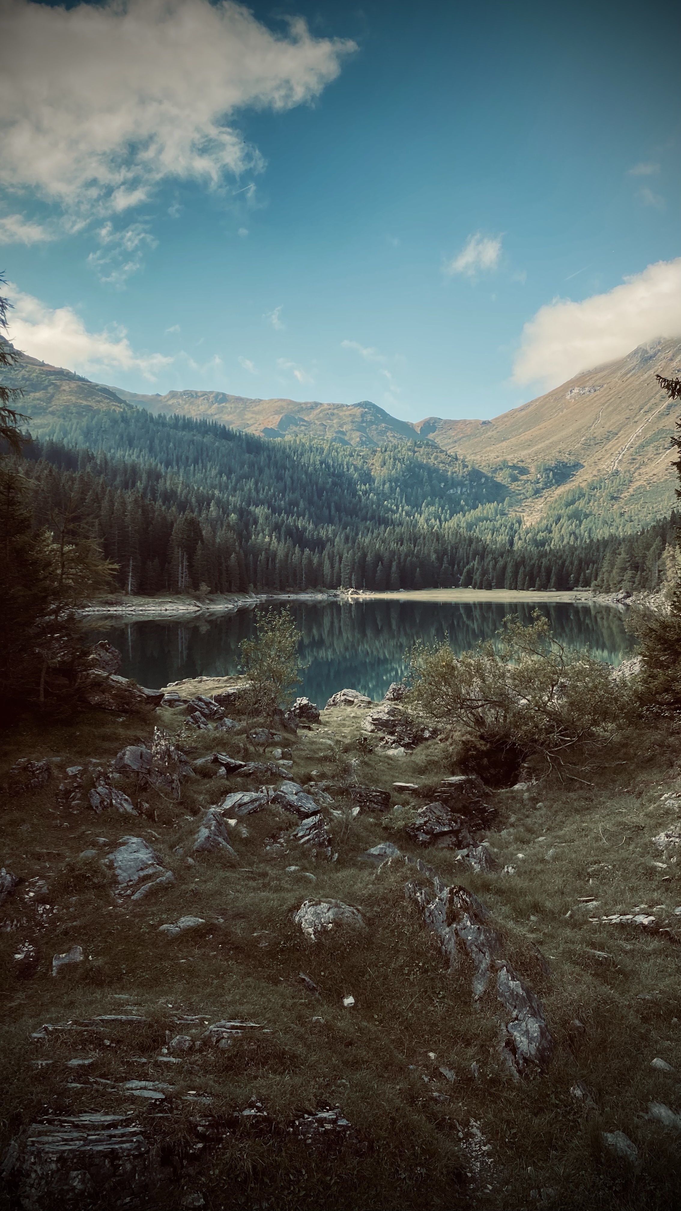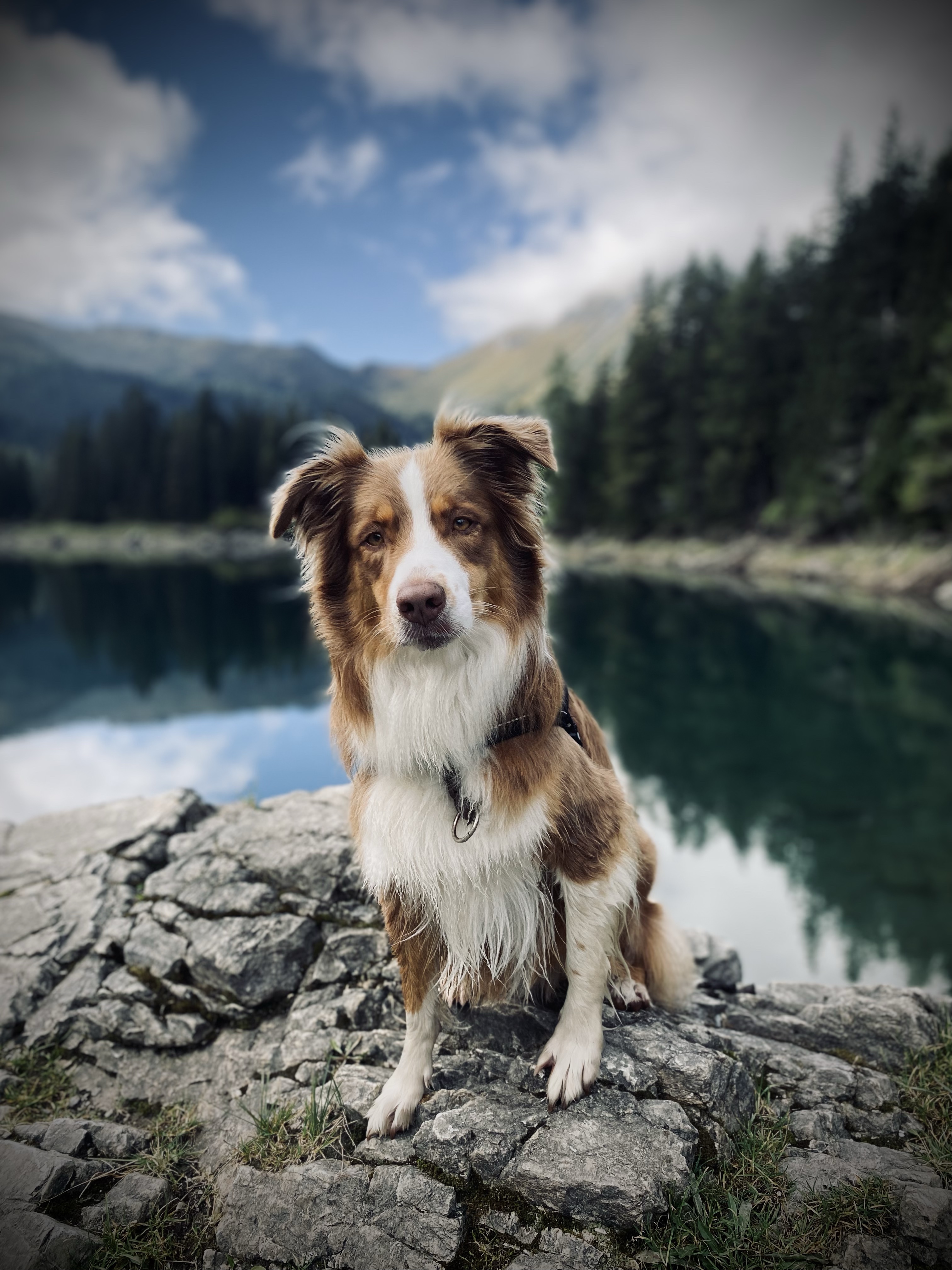 Das Wasser war glasklar und und für eine kurze Zeit kam sogar wieder die Sonne zum Vorschein. Der perfekte Ort also für eine kleine Rast bei Käsebrot, Apfel und Wasser – natürlich alles brav geteilt mit Ginger, die ihre Sache einfach toll macht und immer verlässlich und freudig an meiner Seite bleibt.
