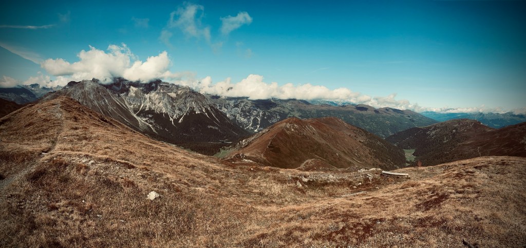 Das Wetter heute war wieder traumhaft, ein paar Wolken, viel blauer Himmel und noch mehr Sonne – herrlich. Hin und wieder musste man einfach stehen bleiben, die Stimmung in sich aufnehmen, zurückschauen und das Panorama genießen.